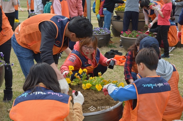 최근 (사)동두천시종합자원봉사센터는 한마음 가족봉사단 80여명과 함께 보건소 맞은편 공터 화분과 어린이집, 아동센터, 상패동 주민센터 화단에 꽃을 심는 봉사활동을 실시했다. 사진은 행사 참가자들이 꽃을 심는 모습.(사진제공=동두천시청)