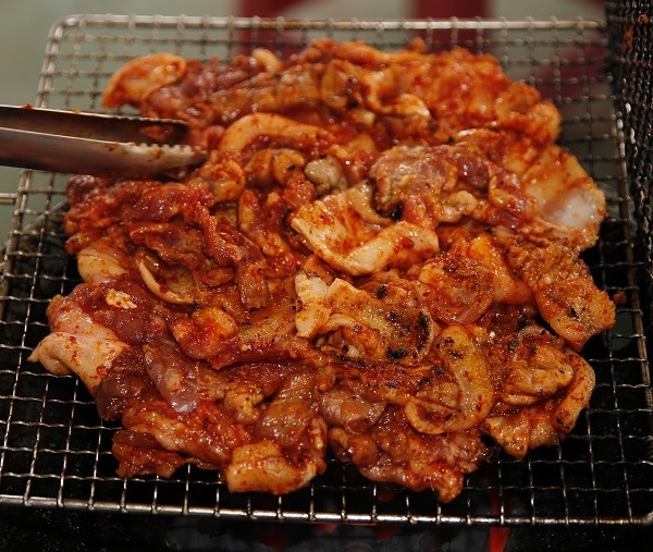 | ▲ 연탄불 직화로 구어지고 있는 양념 돼지 불고기(사진) | ||