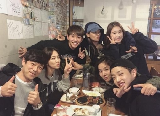 공개된 사진 속에는 '태양의 후예' 속 의료팀 멤버인 송혜교, 이승준, 서정연, 온유, 박환희 등이 회식을 즐기는 모습이 담겨 있다. 특히 극 중 알파팀 소속의 김기범 역을 맡은 김민석이 의료팀 회식에 껴 있어 눈길을 끈다.