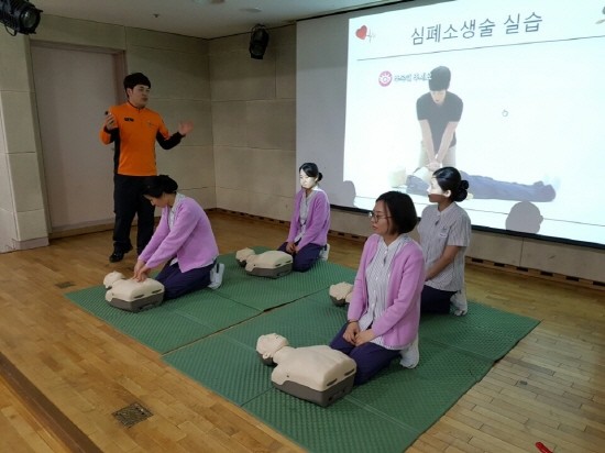 최근 서울 은평소방서는 은평시립병원 관계자 30여 명을 대상으로 위급상황 발생시 대처할 수 있는 심폐소생술 교육과 화재 발생시 초기대응능력 향상을 위한 소방안전교육을 실시했다. 사진은 간호사들이 심폐소생술 실습을 진행하는 모습.(사진제공=은평소방서)