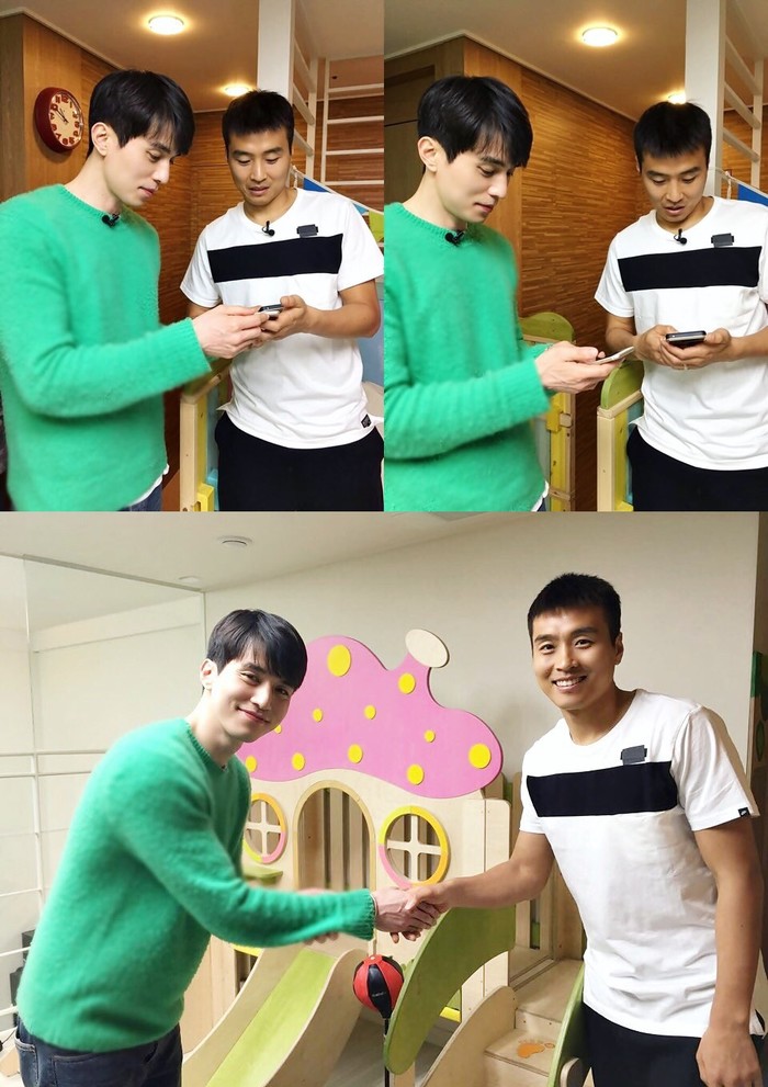 사진 속 이동욱은 이동국과 번호를 교환하고, 마치 계약을 체결하듯 악수를 하며 카메라를 응시한 채 미소 짓고 있다. 이는 이동욱이 이동국에게 앞으로 육아할 때 도움의 손길이 필요하면 연락하라는 의미로 서로의 번호를 주고받은 것.
