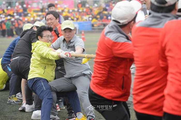 지난 23일 세종시는 출범 후 5회째를 맞는 화합 한마당 ‘세종시민 체육대회’를 조치원읍을 비롯해 지난 4월 개청한 종촌동까지 14개 읍·면·동이 모두 출전한 가운데 조치원체육공원에서 개최했다. 사진은 대회 참가자들이 줄다리기 경기를 하는 모습.(사진제공=세종시청)