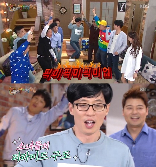 이날 댄스 요청에 ‘해피투게더3’ 제작진들은 ‘픽미’를 틀었다. 출연자들은 ‘픽미’가 흘러나오자마자 모두 함께 일어나 춤을 췄다.