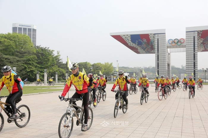 최근 송파구는 '자전거의 날'을 맞아 지역내 자전거관련 단체회원 및 주민들과 함께 '올림픽공원 평화의 문'에서 자전거 라이딩을 통한 안전캠페인을 실시했다.(사진제공=송파구청)