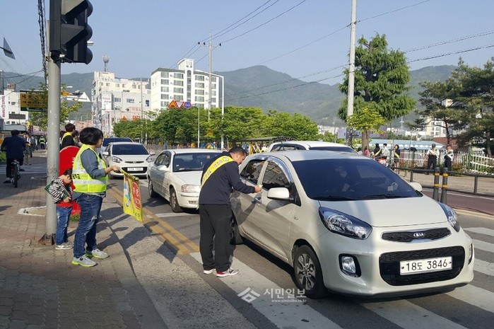 26일 오전 8시 경북 구미시는 상모초등학교 앞에서 시 관계자와 학부모 등 50여명이 참여한 가운데 어린이 교통사고 예방을 위한 초등학교 등굣길 안전캠페인을 실시했다.(사진제공=구미시청)