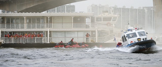 27일 오전 서울 여의도한강공원과 원효대교 남단 일대에서 열린 대규모 복합재난 상황을 가상한 민, 관, 군 합동훈련에서 구조작전이 펼쳐지고 있다.