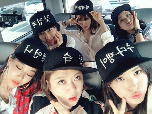 사진 속 제시, 김숙, 민효린, 홍진경, 티파니, 라미란은 자신의 별명이 들어간 모자를 쓰고 포즈를 취하고 있다.