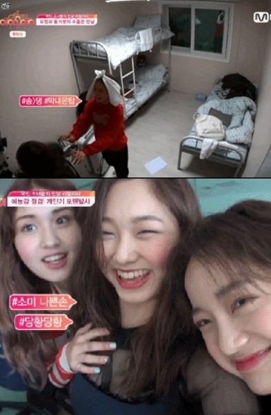 전소미는 두 살 많은 김도연을 밀치고 목덜미로 끌어안았다. 또 강미나의 경우는 가슴을 만지는 나쁜 손이 포착되기도 했다.
