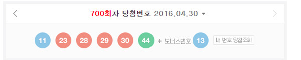 한편 제700회 나눔로또 추첨에서 당첨번호는 '11, 23, 28, 29, 30, 44'으로 결정됐다. 보너스 번호는 '13'이다.