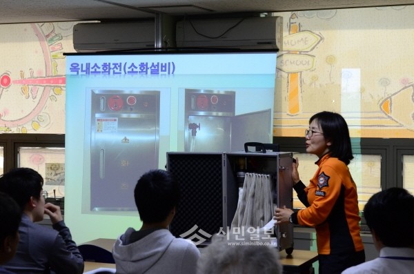 최근 서울 영등포소방서는 신길종합사회복지관에 근무하는 직원 80여명을 대상으로 소방안전교육을 실시했다. 사진은 소방서 관계자가 옥내소화전 사용 방법에 대해 설명하는 모습.(사진제공=영등포소방서)