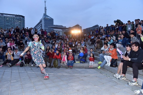 [고양=이기홍 기자]2016 고양국제꽃박람회 기간에는 한울광장과 수변무대 등 4개 무대에서 해외민속공연, 바디플라워쇼, 매직쇼, 퍼레이드 등 총 650여회의 공연이 펼쳐진다. 사진은 지난 30일 주말을 맞아 꽃박람회를 찾은 방문객들이 거리 공연을 관람하고 있는 모습. 2016 고양국제꽃박람회는 4월 29일부터 이번 달 15일까지 고양시 호수공원에서 개최된다.