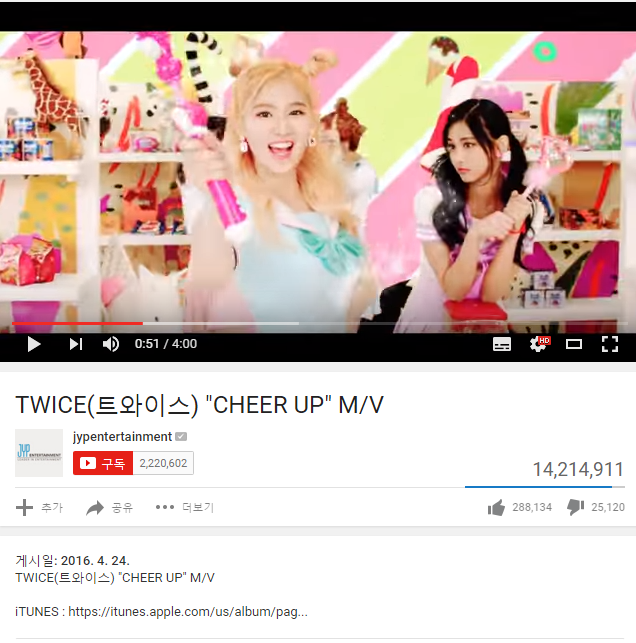 현재 트와이스 'CHERR UP' 뮤비 조회수는 1421만여회로 1500만 고지를 얼마남기지 않았다.