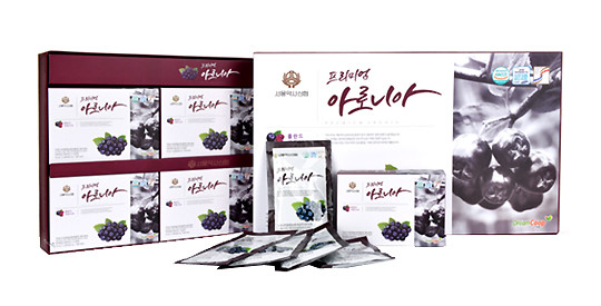 ‘더 프리미엄 아로니아진액’은 70ml 30포로 구성되며, 왕의 열매, 킹스베리로 불리는 아로니아는 청정지역으로 알려진 폴란드에 자생하는 장미과 다년생식물로 강력한 항산화 물질인 안토시아닌이 가장 많이 함유된 과일로 노화예방, 시력회복, 눈의 피로회복 효과가 있으며, 아로니아에 함유된 '폴리페놀'은 악성세포의 생장을 막고 세포의 자살을 막아 항암효과가 뛰어난 물질로 알려져 있다.