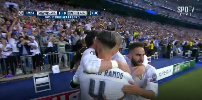 레알마드리드는 5일 오전(한국시간) 산티아고 베르나베우 스타디움에서 열린 2015-2016 UEFA 챔피언스리그 4강 2차전 맨시티와의 경기에서 1-0으로 승리했다.