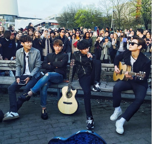 그가 공개한 사진 속에는 본인을 포함한 '히트메이커' 4인방 강인, 정준영, 정진운이 함께 공연하는 모습이 담겨있다. 그는 "오늘밤 11시20분에 jtbc 히트메이커 보러가자"라는 문장으로 팬들의 본방사수를 독려했다.