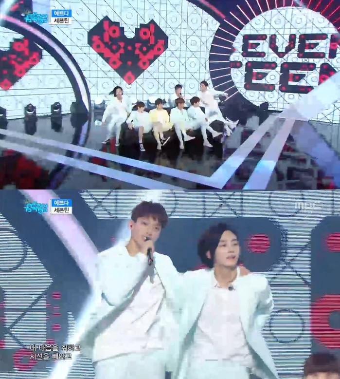 이날 세븐틴는 화이트 수트 의상을 입고 무대에 올랐다. 무대 위에서 자유롭게 노는 듯한 퍼포먼스를 선보인 이들은 소녀 팬들의 뜨거운 호응을 이끌어냈다.