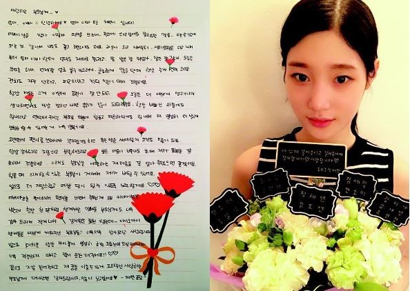 사진 속에는 정채연의 얼굴과 아름다운 글씨체로 부모님에게 사랑을 담은 모습이 담겨져 누리꾼들의 호평을 자아냈다.