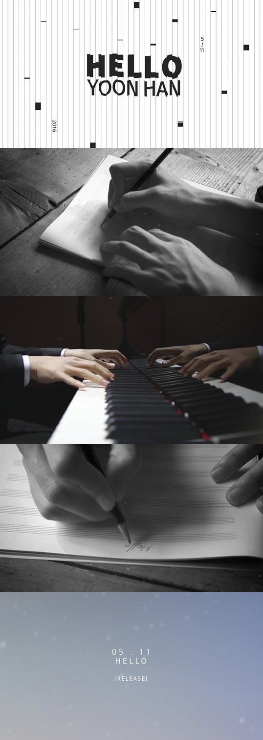 9일 소속사 측은 오는 11일 발매를 앞둔 윤한의 새 디지털 싱글 ‘헬로’의 티저 영상을 공식 유튜브 채널을 통해 공개했으며 서정적인 피아노 멜로디와 감각적인 영상미로 눈길을 끌고 있다.