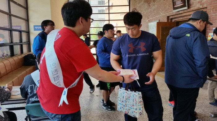 최근 경기 안성시는 '제242차 안전점검의 날'을 맞아 시청 공무원과 유관기관 및 시민단체들이 참여한 가운데 민방위 교육에 참석한 민방위대원들을 대상으로 안성시민회관에서 안전 캠페인을 개최했다. 사진은 관계자들이 민방위대원들에게 홍보물을 배부하는 모습.(사진제공=안성시청)