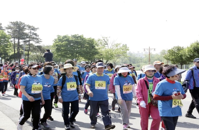 최근 박홍섭 서울 마포구청장은 상암동 월드컵경기장 평화의광장에서 열린 '제16회 여성마라톤대회'에 참석했다. 사진은 박홍섭 구청장(왼쪽에서 세번째)이 3km 걷기코스에 참가한 시민들과 함께 걷고 있는 모습.(사진제공=마포구청)