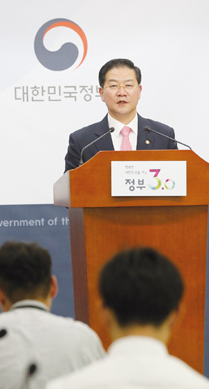 성영훈 국민권익위원회 위원장이 9일 오후 정부세종청사 국토교통부 제2공용브리핑룸에서 부정청탁 및 금품 등 수수의 금지에 관한 법률(일명 김영란법) 시행령 입법예고 관련 브리핑을 하고 있다.