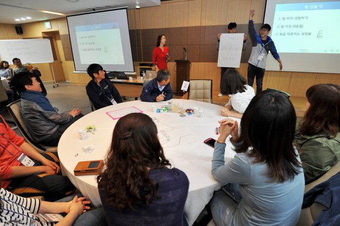 지난 9일 경기 광주시는 전 공무원을 대상으로 공동체의식 함양과 조직경쟁력 향상을 위해 양평군 강상면에 위치한 코바코(Kobaco)연수원에서 '공직자 화합워크숍 교육'을 실시했다. 사진은 참여 공직자들이 위크숍 프로그램을 수행하는 모습.(사진제공=광주시청)