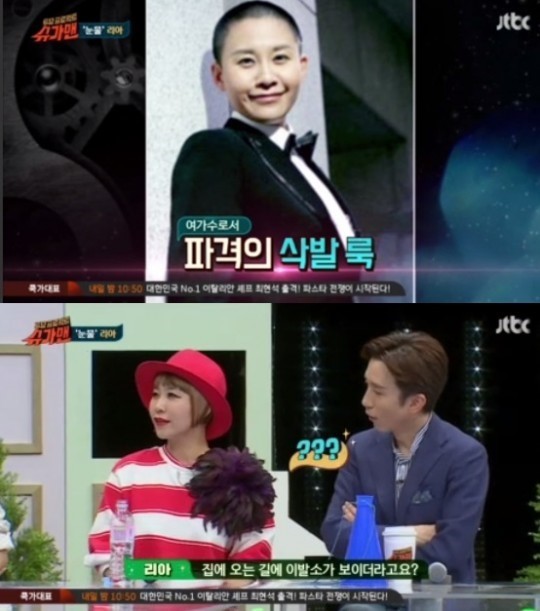 이날 '슈가맨'에서 리아는 MC 유희열로부터 예전에 머리를 빡빡 깎은 이유를 물었다.