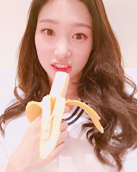 공개된 사진 속 정채연은 바나나를 들고 귀여운 표정과 함께 상큼한 미모를 과시해 보는이들의 시선을 사로잡고 있다.