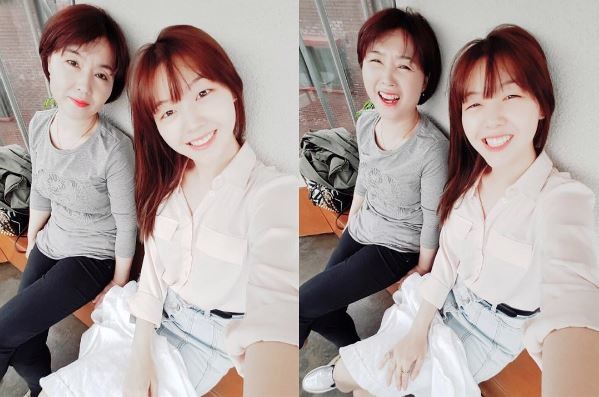 민아는 사진 속에 어머니와 함께 붕어빵 표정을 짓고 있다.