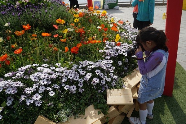 | ▲ 사진제공=고양시청/사진설명:색색의 꽃들로 가득 찬 야외정원에서 꽃박람회를 방문한 한 어린이가 직접 카메라를 들고 꽃 사진 찍기에 빠져있다. | ||