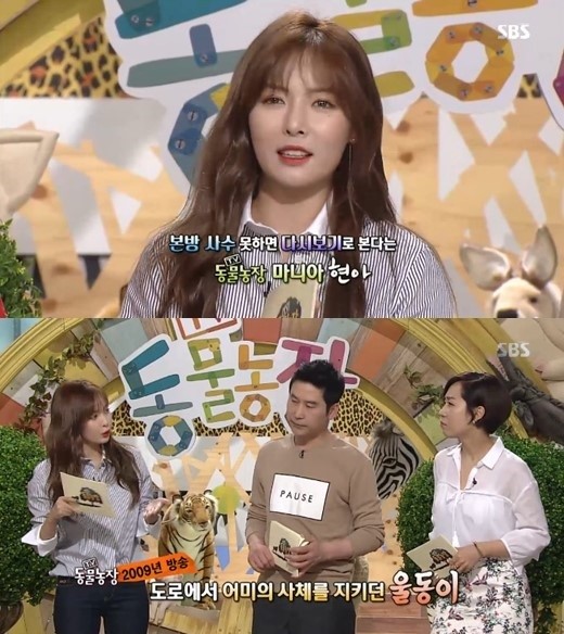 지난 15일 방송된 SBS 예능프로그램 '동물농장'에는 현아가 특별 게스트로 출연해 프로그램을 함께 진행했다.