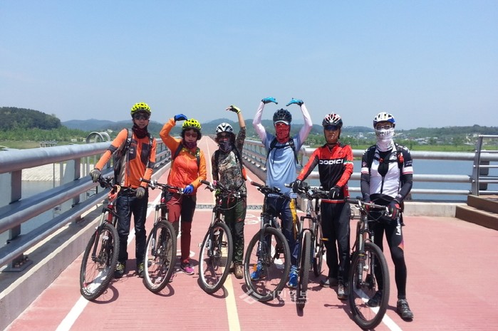 지난 12일 경북 구미시 형곡1동 그린바이크 사랑봉사대는 회원 10여명이 참석한 가운데 상풍교-경천대-상주보-낙단보까지 5월 정기 라이딩을 실시했다. 사진은 라이딩에 참석한 관계자들이 기념촬영을 하는 모습.(사진제공=구미시청)