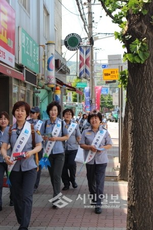 지난 16일 경기 이천소방서는 소방차의 재난현장 도착시간 단축을 위한 '소방차 길터주기 국민 참여훈련'을 실시했다. 사진은 소방차 길터주기 대국민 홍보를 위해 이천여성의용소방대원들이 관고시장에서 가두 캠페인을 실시하는 모습.(사진제공=이천소방서)