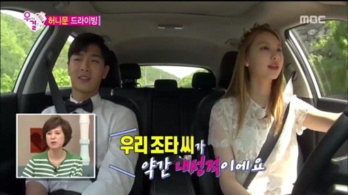 21일 오후 방송한 MBC '우리 결혼했어요'에서는 조타와 김진경이 허니문 드라이빙을 떠났다.