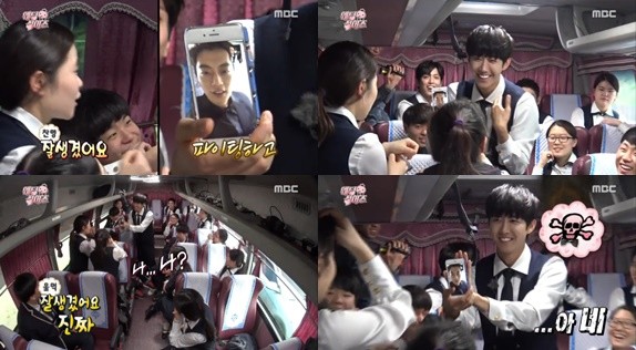 이때 한 여학생은 윤두준과 영상통화를 1대1로 하게됐다. 평소 윤두준의 팬이었던 것. 윤두준은 여학생을 보며 “오늘 공연 잘해 파이팅”이라고 응원해줬다. 이에 여학생은 “진짜 잘생겼어요”라고 윤두준에게 말했다. 하지만 광희는 “나나?”라고 여학생에게 물어보며 장난을 쳤다.