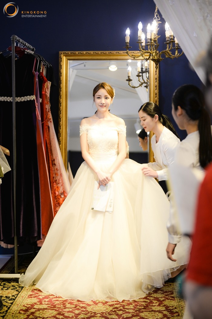 그러한 가운데 공개된 촬영 비하인드 사진 속 윤진이는 어깨선이 예쁘게 드러난 새하얀 웨딩드레스를 입고, 수줍은 듯 웃고 있어 시선을 사로잡는다. 이어진 컷에서 윤진이는 화기애애한 분위기 속에서 리허설에 임하고 있는 모습. 그의 화사하고 상큼한 미소는 사랑스러운 매력을 배가시키며 극중 모습을 잊게 만든다.