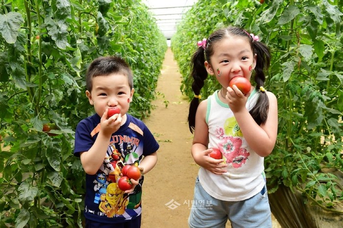 | ▲ 퇴촌 토마토 축제에서 아이들이 토마토를 맛있게 먹고 있다. | ||