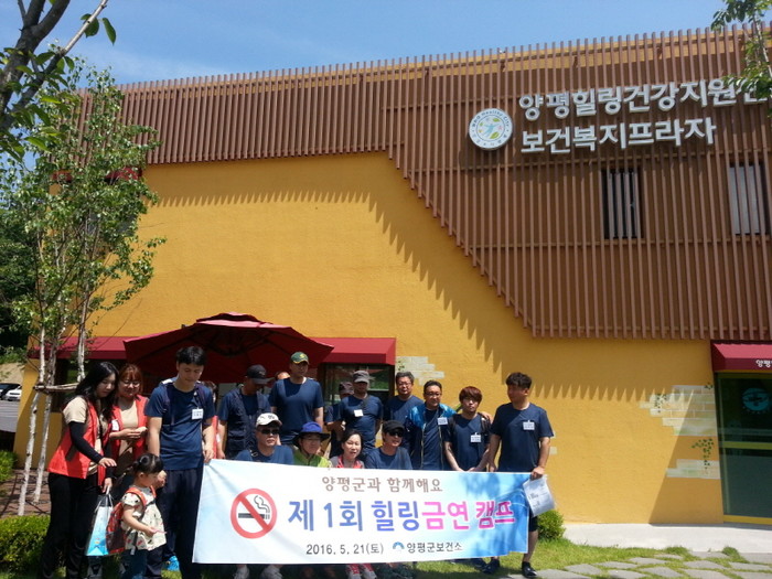 지난 21일 경기 양평군보건소는 금연·절주 문화의 확산을 위한 대국민 홍보 및 교육의 일환으로 '제1회 힐링 금연 캠프'를 개최했다. 사진은 행사 참가자들이 기념촬영하는 모습.(사진제공=양평군청)
