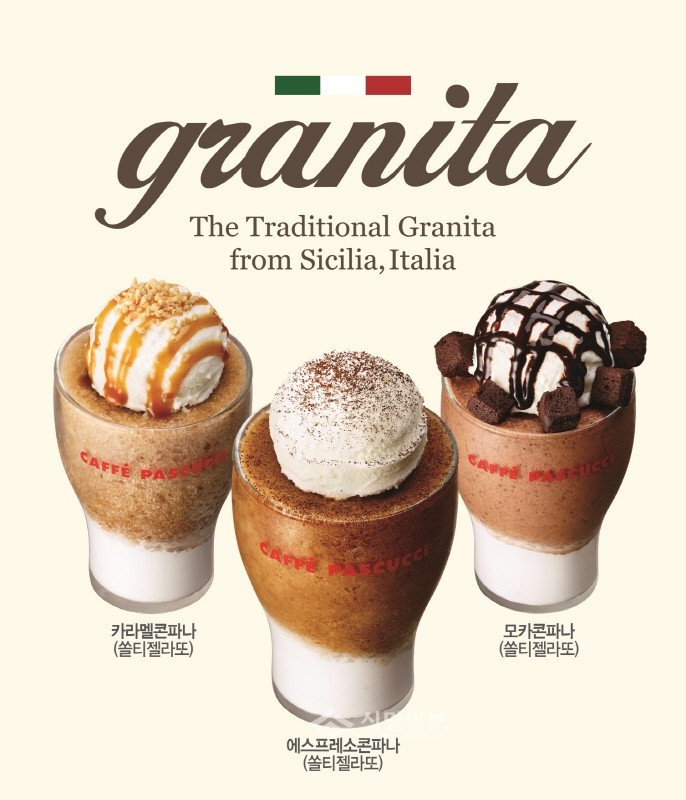 올해 파스쿠찌의 그라니따 신제품은 시칠리아 섬 원조 그라니따의 특징을 그대로 살렸다. 에스프레소와 생크림을 활용한 '커피 그라니따'와 과일셔벗 타입의 '과일 그라니따' 2가지 타입이 있으며, 이탈리아의 전통 아이스크림인 젤라또를 곁들여 풍부한 맛과 시원함을 더했다.