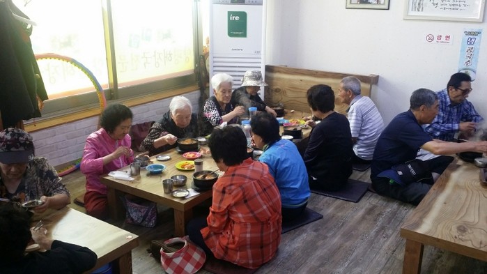 지난 25일 경기 동두천시 중앙동 소재‘이담양평해장국’에서 홀몸노인 20명을 초대해 중식봉사활동을 실시했다. 사진은 행사에 참석한 노인들이 식사하는 모습.(사진제공=동두천시청)