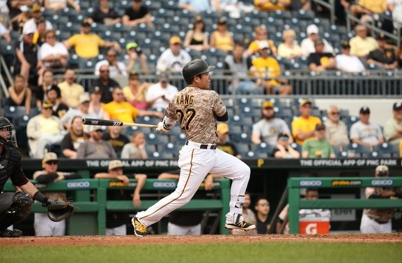 강정호는 27일(한국시간) 미국 펜실베이니아주 피츠버그 PNC파크에서 열린 애리조나 다이아몬드백스와의 홈경기에 4번 3루수로 선발 출전해 2개의 안타를 기록했다.
