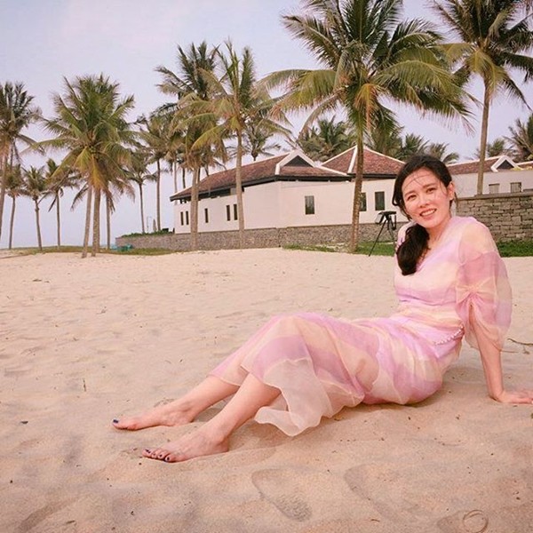 공개된 사진 속 손예진은 바다 모래사장 위에서 환한 미소로 카메라를 응시하고 있다. 손예진은 특히 분홍색 우너피스를 입어 여성스러운 매력을 자아냈다.