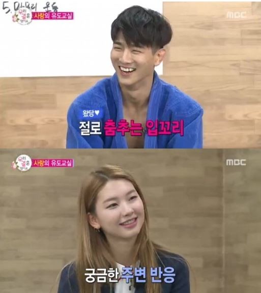 28일 방송된 MBC 예능프로그램 '우리결혼했어요'에서는 유도 선수 출신인 조타가 김진경에게 호신술을 알려주는 장면이 그려졌다.