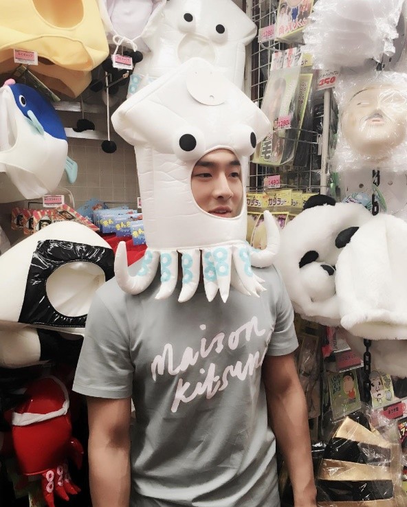 공개된 사진 속에는 조타가 오징어 탈을 쓰고 옅은 미소를 띤 채 한 곳을 응시하고 있었다.