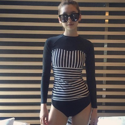 김진경은 최근 자신의 인스타그램을 통해 "#surfea #서피래쉬가드 #써피 #서피 #래쉬가드"라는 해시태그를 달고 사진 한 장을 게재했다.