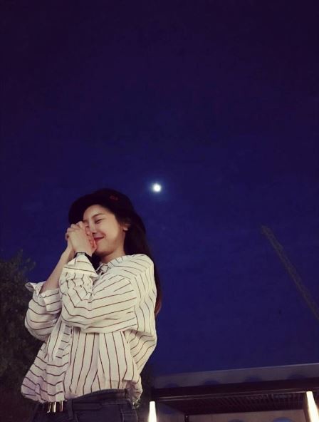 사진 속에는 두손을 모아 달님에게 기도를 드리는 소진의 귀여운 모습이 그려졌다.