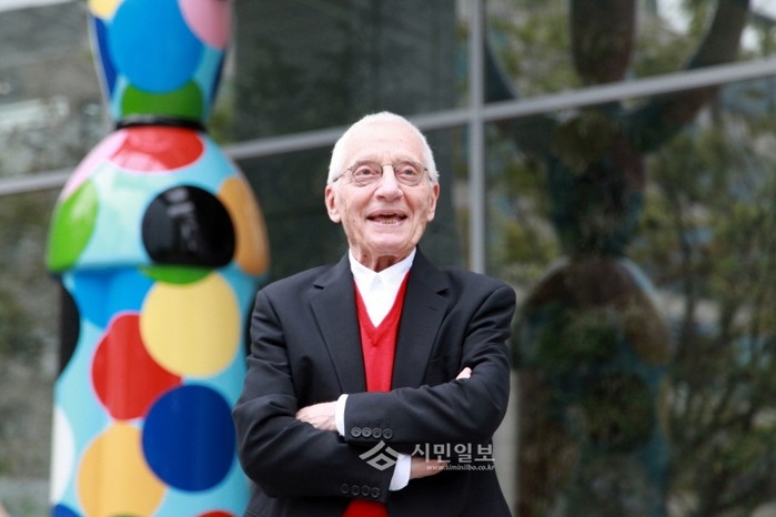 | ▲ SPC그룹 양재사옥 앞 SPC그룹 창립 70주년 기념 작품 미스터 차오(Mr.Ciao)앞에 선 알레산드로 멘디니. | ||