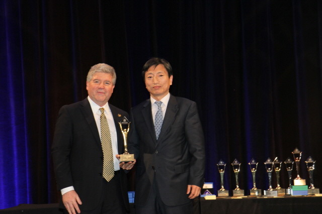 | ▲ (왼쪽부터)마이클 갤러허 스티비어워즈 회장 , 장동원 한전 홍보실장 | ||