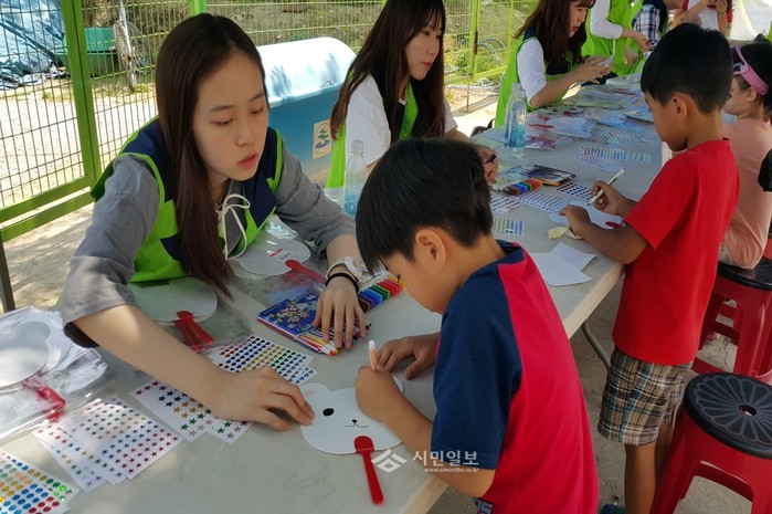 최근 송파구 풍납종합사회복지관에서 열린 ‘바람드리 가족 어울림축제’에서 진행된 부채만들기 코너에서 아이들이 직접 그림을 그리며 부채를 만들고 있다.(사진제공=송파구청)