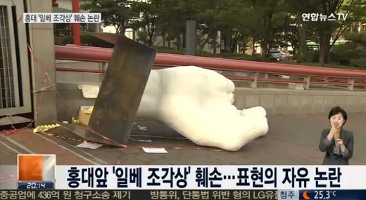 1일 홍익대학교 정문에 설치된 조각상 설치 반대를 주장하는 3명이 해당 조형물을 훼손시켰고, 이로 인해 결국 경찰에 붙잡힌 것으로 알려졌기 때문이다,